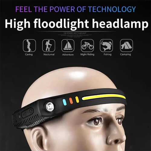 Sensor LED Headlamp with Warning Lights for Hands Free Night Fishing and Safety(Cash on delivery is supported)